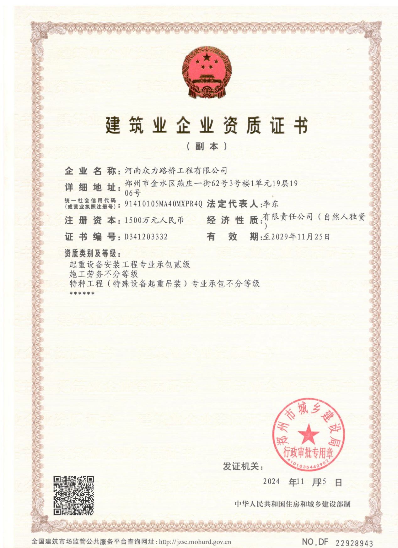 建筑企业资质证书