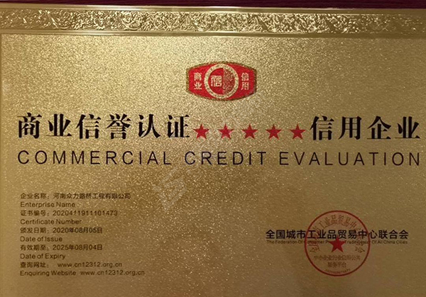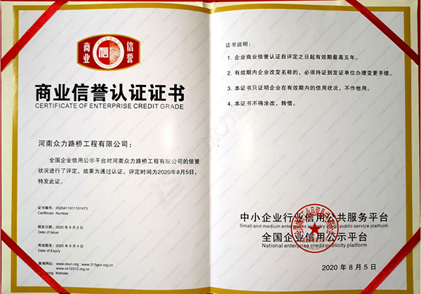 商业信誉认证证书